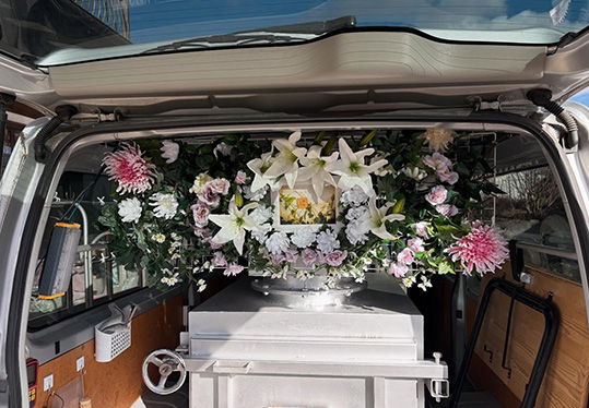 ライズセレモニーでは、ご近所の目が気にならない様配慮されたセレモニーカーでご自宅までお伺い致します。